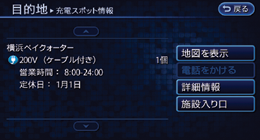 リスト画面にあるアイコンをタッチすると、充電スポット情報画面を表示します。