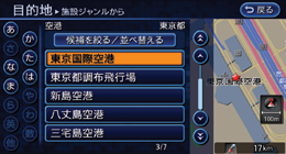 文字を入力しているときに該当件数が少なくなると、自動的にジャンルリスト画面が表示されます。該当件数は右上に表示されます。