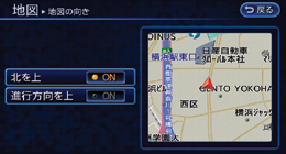 メニューボタン → 設定 → ナビゲーション → 地図ビューの設定 → 地図表示設定 → 地図の向きの手順でも設定できます。