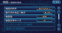 メニューボタン → 設定 → ナビゲーション → 地図ビューの設定 → 地図表示設定 → 進行方向を広く表示の手順でも設定できます。