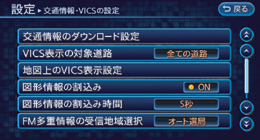 設定 → ナビゲーション → 交通情報・VICSの設定をタッチする