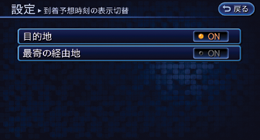 1. メニューボタンを押す 設定 → ナビゲーション → ルートガイドの設定 → 到着予想時刻の表示切替をタッチする
