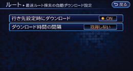 ルート → 探索条件設定 → 最速ルート探索の自動ダウンロード設定をタッチする