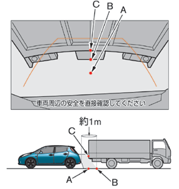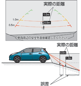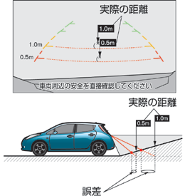 立体物が近くにある場合には実際の距離と異なって表示される場合があります。