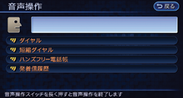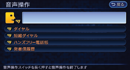 ボタンを押すと、1つ前のコマンド画面に戻ります。始めの画面では、音声操作をキャンセルします。
