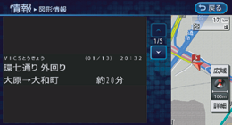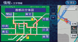 本機ではVICSで提供された最新の情報を地図上に重ねて表示したり、文字や道路図などの形で画面に表示できます。
