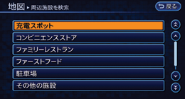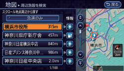 カーソル( )を中心とした周辺施設を近い順に最大100件まで表示します。