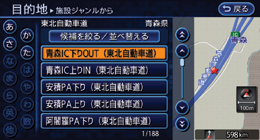 文字を入力しているときに該当件数が少なくなると、自動的に施設リスト画面が表示されます。該当件数は右上に表示されます。