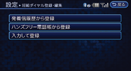 設定 → 電話・通信 → 電話 → 短縮ダイヤル登録・編集 → 新規登録をタッチする