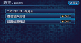 コマンドを発話した後に、システムがユーザーに認識結果が 正しいかを確認を行います。 システムがコマンドを認識すると、確認メッセージが表示されます。発話したコマンドをシステムが正しく認識しているときは、『はい』を発話して、音声操作を続けてください。システムが異なったコマンドを認識しているときは、『いいえ』を発話して、前の画面に戻ってください。