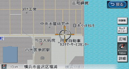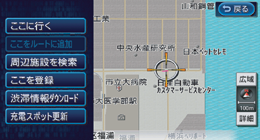 カーソル( )の中心付近に点滅表示される道路が、ルート探索のときの目標となります。