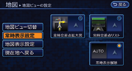 マップメニュー → 地図ビューの設定 → 常時表示設定をタッチする