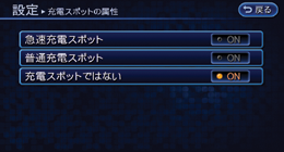 登録した場所を充電スポットとして設定すると、目的地や経由地を探すときに地図データに収録されていなくても充電スポット検索や周辺施設検索で場所を検索できます。