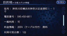 充電スポット情報画面で詳細情報をタッチすると、さらに詳細な情報が確認できます。
