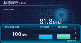 状態表示ボタンを押すと、現在使用しているオーディオやエアコンの状態、車両情報を表示します。