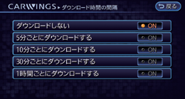 CARWINGS → CARWINGS設定 → 交通情報のダウンロード設定 → ダウンロード時間の間隔をタッチする