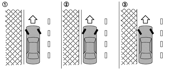 前輪を縁石の方に向け、縁石側車輪が縁石にわずかに接触するまで前進します。