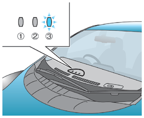 タイマー充電が予約されているときに電源ポジションをOFFにしてから充電ケーブル(EVSE)を接続すると、充電インジケーターは(1)から(3)の順に点灯します。充電ケーブル(EVSE)を接続してから約15分後に自動的に消灯します。