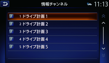 ランチャーメニューの 情報 → NissanConnect Services → 情報チャンネル → ドライブ計画ダウンロード をタッチする