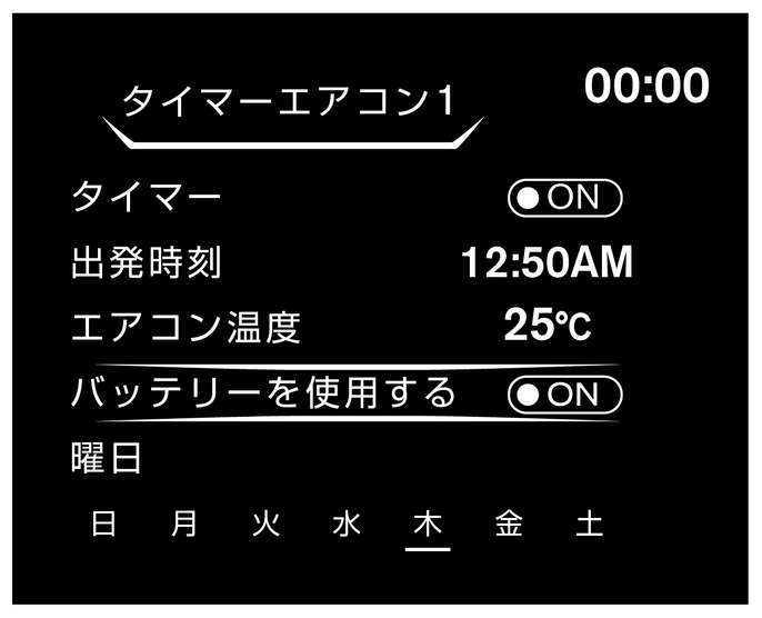 リチウムイオンバッテリーが消費されるため、タイマーエアコンの必要が無いときは、[バッテリーを使用する]をOFFに切り替えてください。