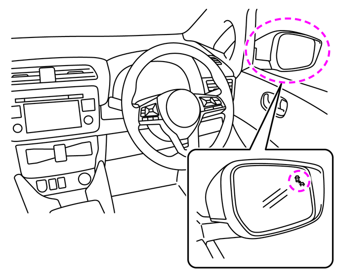 レーダーセンサーにより後方を横切ろうとする車両を検知すると、警報音とともに検知した側のドアミラー鏡面にある表示灯が点滅します。