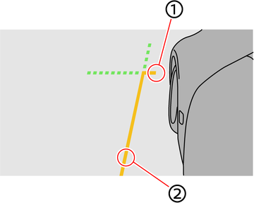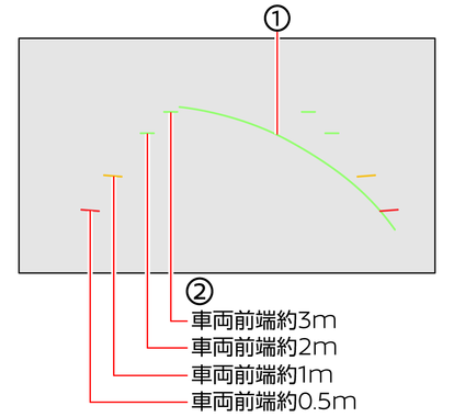 車両前方の位置の目安を示します。延長部分が破線で表示されます。