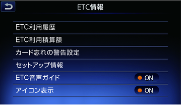 ETCユニットがセットアップ (ETCユニットを利用可能にする手続き) されていない場合は、 セットアップ情報以外は選べません。
