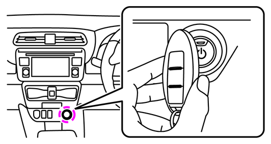 ブレーキペダルを踏み、キー(インテリジェントキー)の裏面をパワースイッチに接触させます。