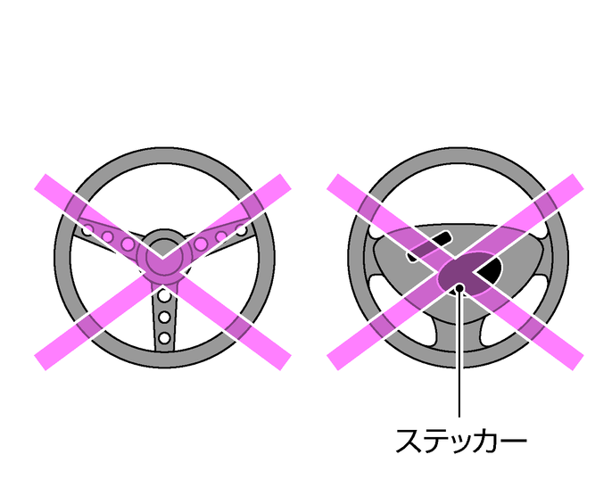 不適正なハンドルに交換したり、SRSエアバッグ格納部にステッカーなどを貼らない。