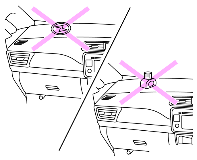 SRSエアバッグ格納部およびその周辺にステッカーなどを貼ったり、アクセサリーや芳香剤などを置かない。