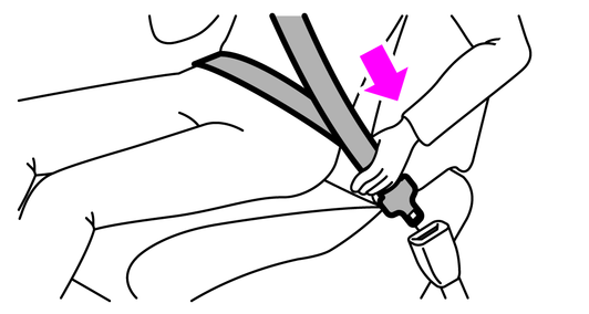 正しい姿勢でシートに座り、タングを持ってベルトをゆっくり引き出します。