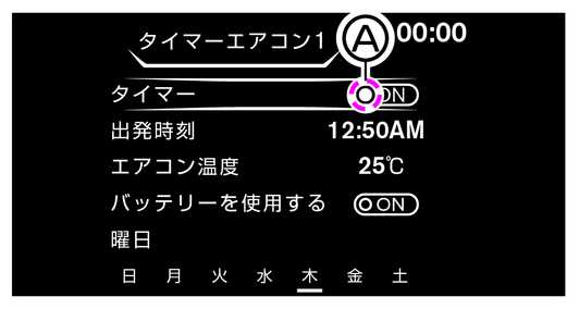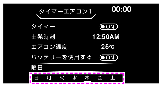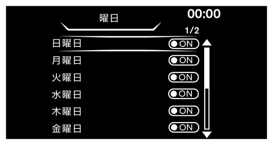 日曜日から土曜日までそれぞれON・OFFを選択します。ステアリングスイッチの