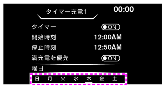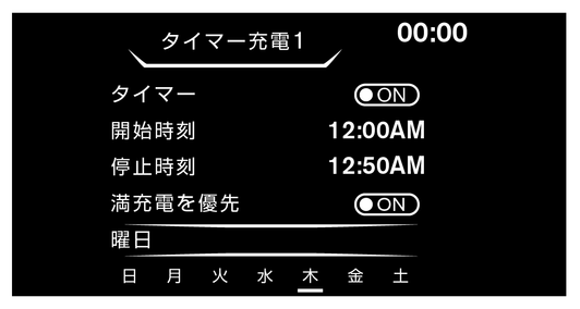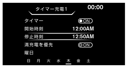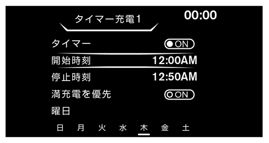 時刻は2種類設定することができます。ここではタイマー充電1の登録方法を説明します。