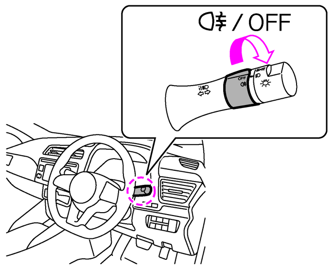 ライトスイッチ位置がAUTOのときにリヤフォグランプスイッチをONにすると、車外の明るさに関係なくリヤフォグランプとヘッドランプが点灯します。