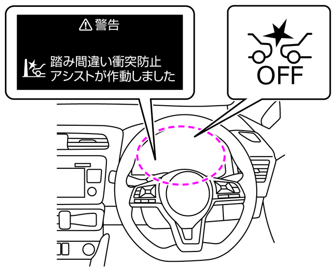 警告メッセージ(踏み間違い衝突防止アシスト作動時表示
