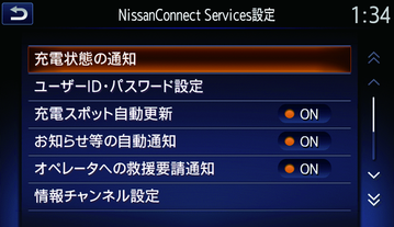 NissanConnect サービスの設定を初期化します。 初期化された設定および消去された履歴は元に戻すことはできません。 |