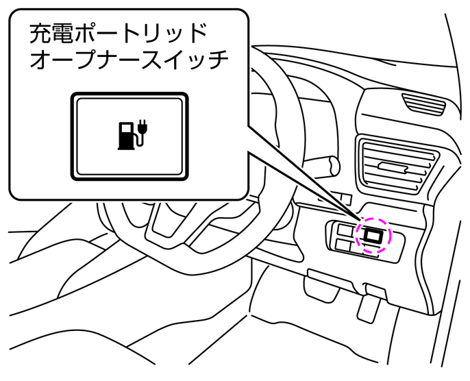 充電ポートリッドオープナースイッチを押すと、約30秒間ロックが解除されます。