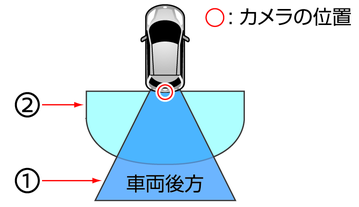 リヤワイドビューは、車両後方約180°の映像を、画面幅いっぱいに表示します。