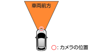 フロントワイドビューは、車両前方約180°の映像を、画面幅いっぱいに表示します。