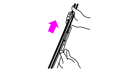 ワイパーブレードを矢印の方向に動かして取り外します。