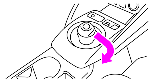 ブレーキペダルを右足でしっかりと踏んだまま、セレクトレバーを右手前にスライドさせ、シフトポジションをDに切り替えます。