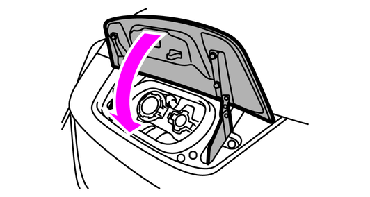 閉めるときは、充電ポートキャップを確実に閉めてから、充電ポートリッドを確実に閉めます。