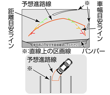 画面では車幅目安ラインと駐車スペースの区画線が平行に見えても、実際は平行でない場合があります。
