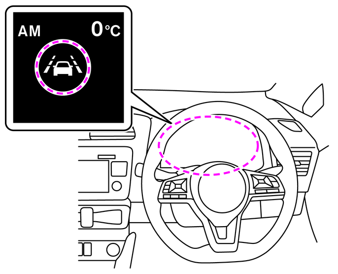 走行車線の右側もしくは、左側のレーンマーカーに近づいたと判断すると、ステアリングホイール(ハンドル)の振動とともにメーター内のインテリジェント LI(車線逸脱防止支援システム)表示が点滅します。