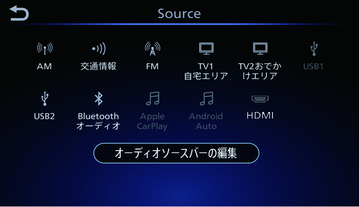 オーディオ画面表示中にオーディオを押してもソース選択画面が表示できます。
