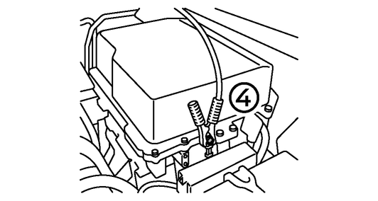 手順4のケーブルの反対側(4)を自車の車体(12Vバッテリーから離れたステーなど)に接続します。