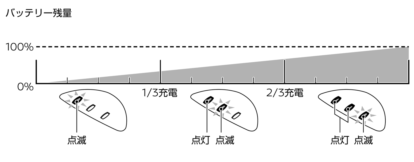 充電が完了すると、すべてのインジケーターが約5分間点灯します。 |