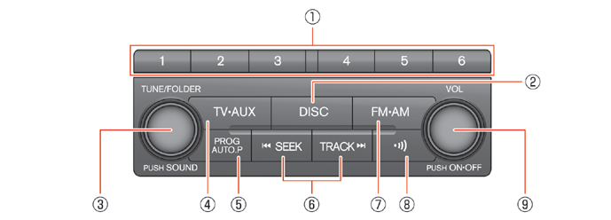 受信できるラジオの周波数・テレビのチャンネル検索や曲送りをします。