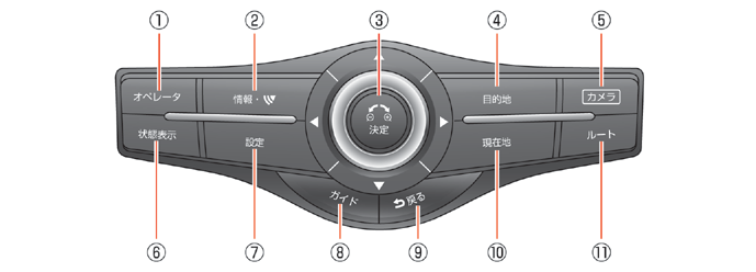 中央の決定スイッチは、選択した項目を確定するときに押します。地図画面で押すと、地図に関するいろいろな操作ができる便利なマップメニュー画面を表示します。
