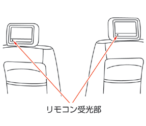 後席操作を行うときは、後席リモコンの発光部を後席ディスプレイ付近にある受光部に向けてスイッチを押して操作します。